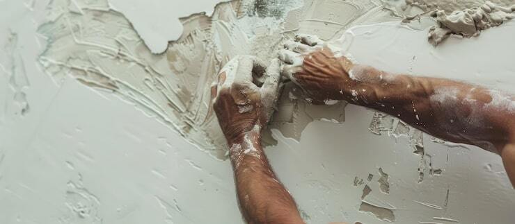 - Формирование фактуры: шпателем или кельмой создаются прожилки и поры.